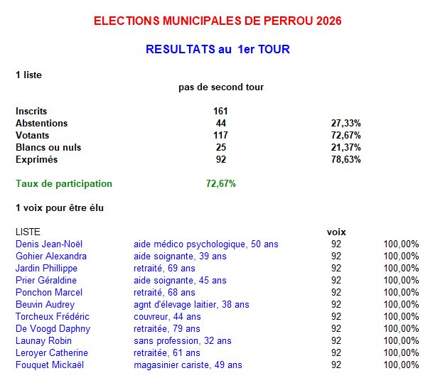 Résultats des élections municipales 2026 de Perrou